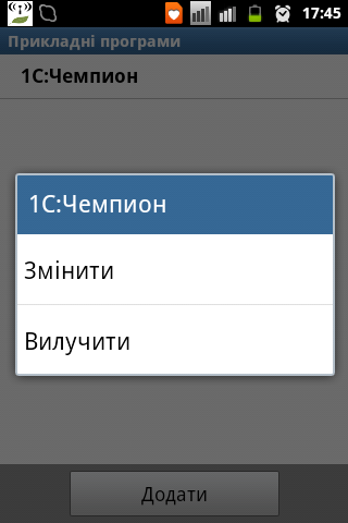 2. Подержать пальцем запись приложения 1С:Чемпион