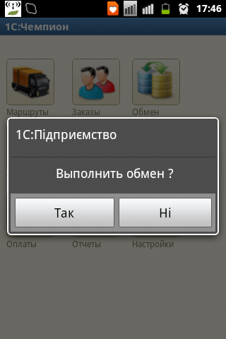 2. Обмен - выполняет передачу набраных заказов и обновление всей информации в программе