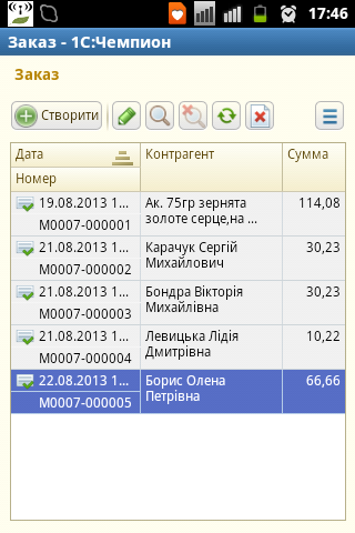 5а. кнопка создать - создает новый заказ, карандаш открывает его для изменения или пометка на удаление (кнопка крестик) , если он не был еще отправлен