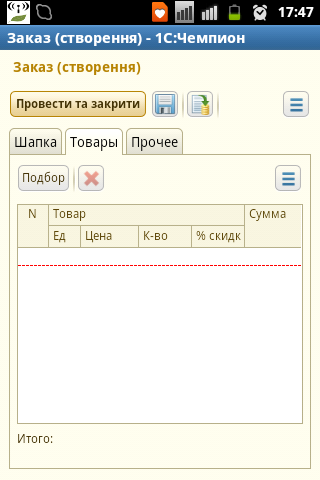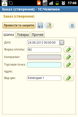 Для проверки на месте покупки можно протестировать на старой версии 1С:Заказы версия от 4 октября 2012 г. из google play