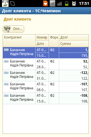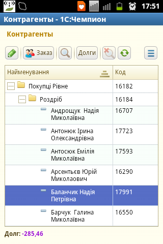 3. Контрагенты - показывает клиентов с которыми вы работаете и детальную задолженность - кнопка "Долг"